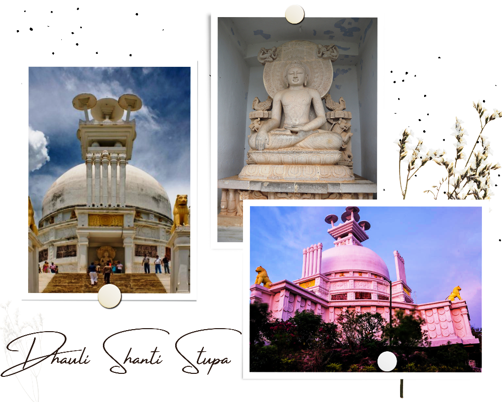 striking white peace pagoda & Buddhist shrine constructed atop Dhauli Hill in 1972.